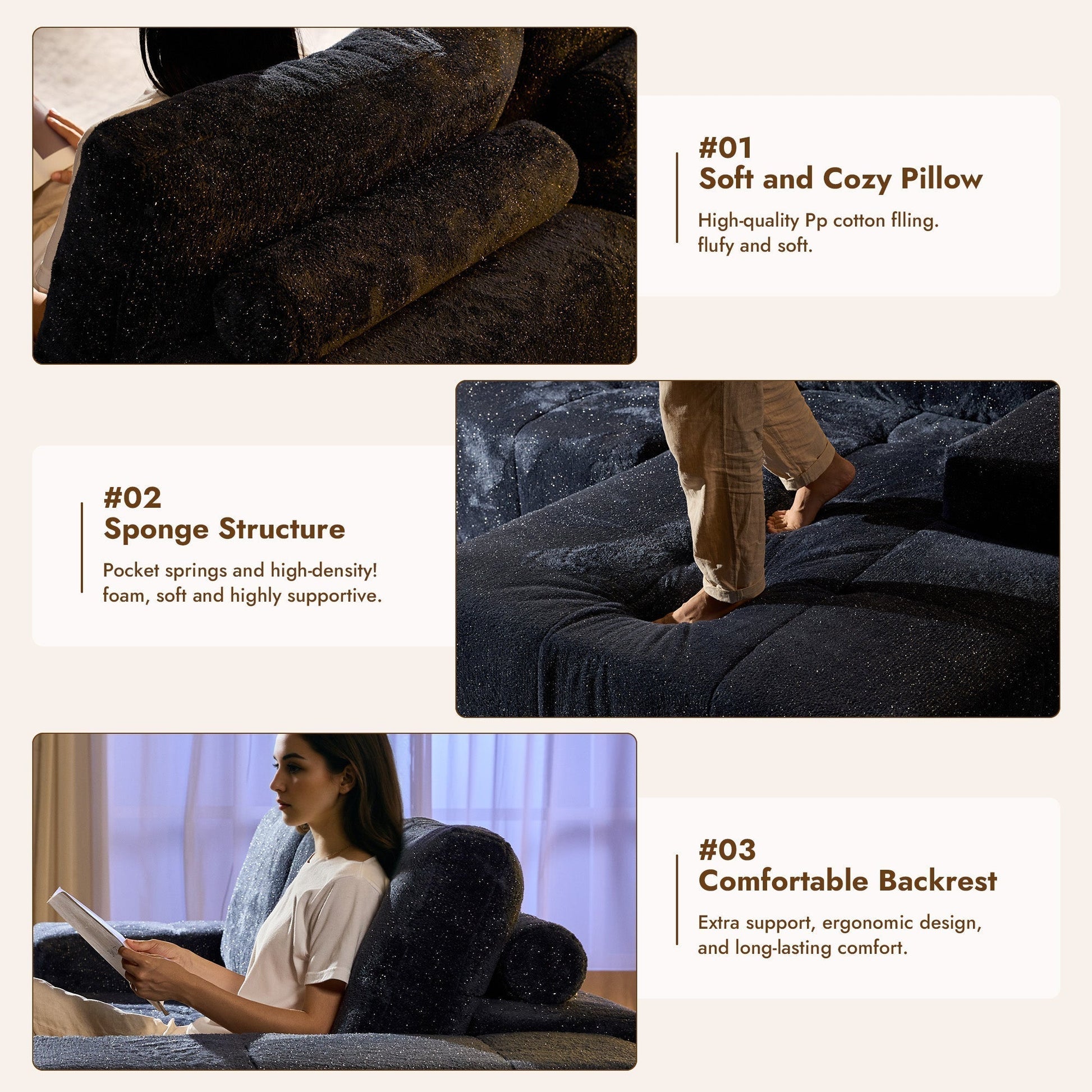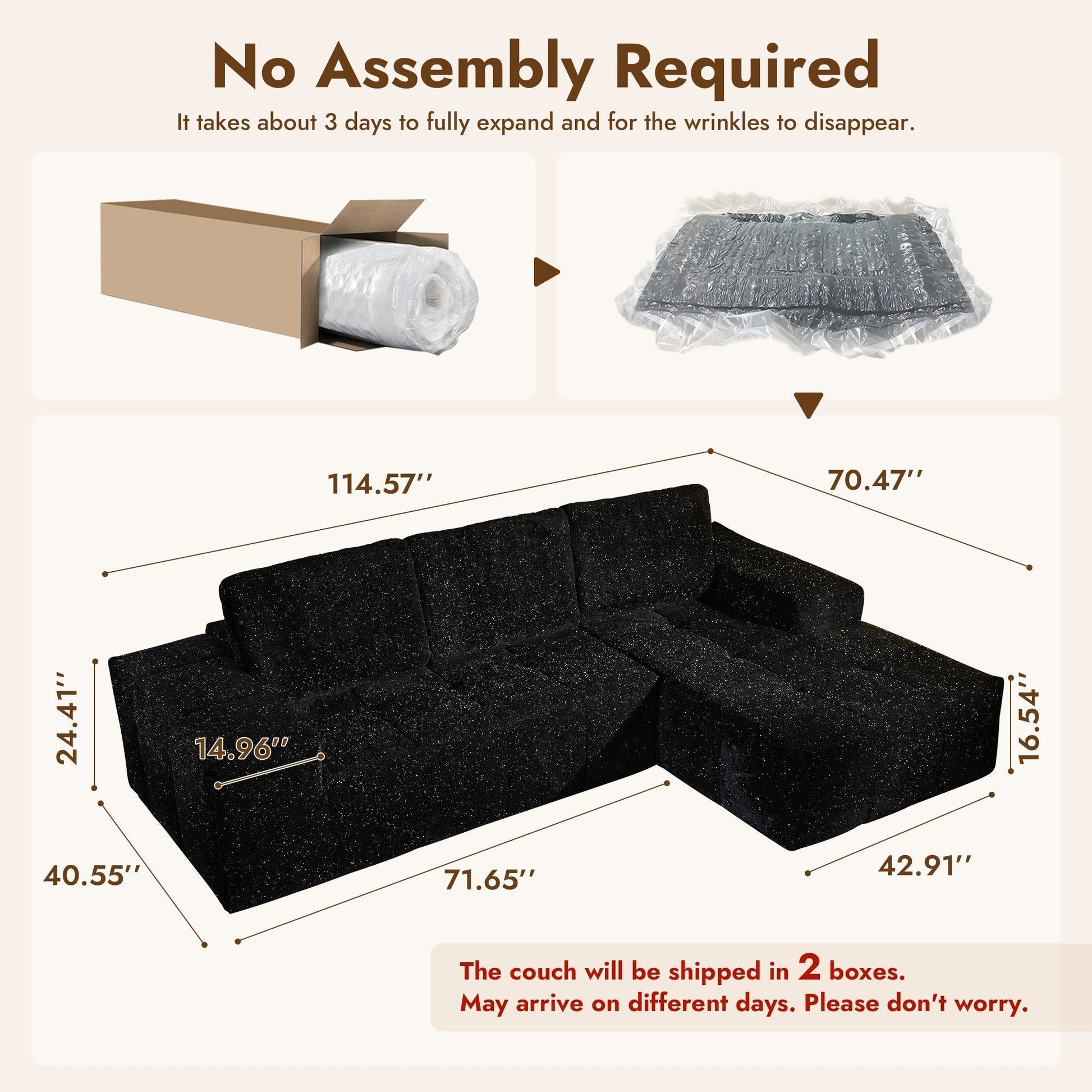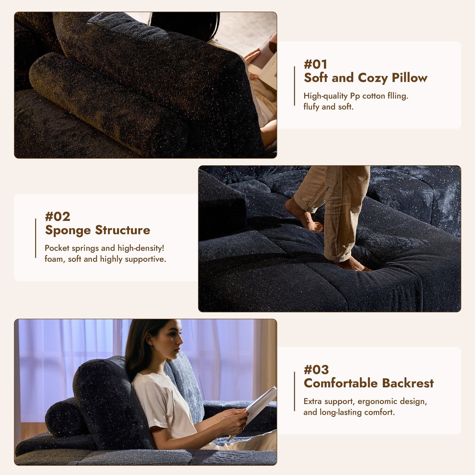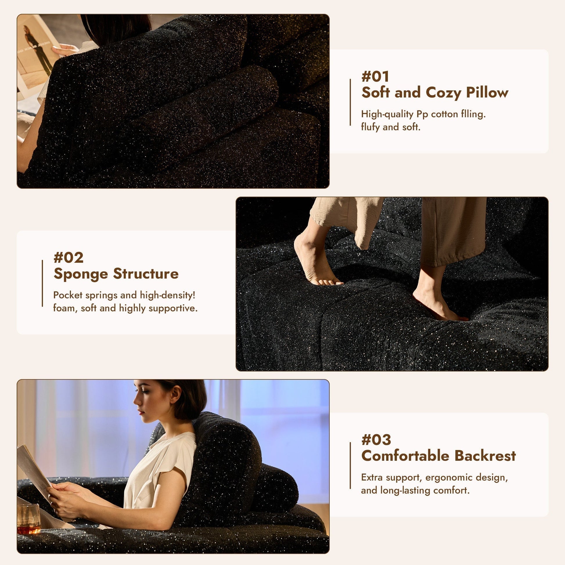 No Assembly Required:Escape the typical furniture setup hassle with our modular cloud lounge. Simply unbox all parts and lightly tap each segment to boost its springiness and poof, bringing it back to its photogenic glory. Complete revival may take up to around 72 hours. Delight in the ease of a no-assembly nirvana!