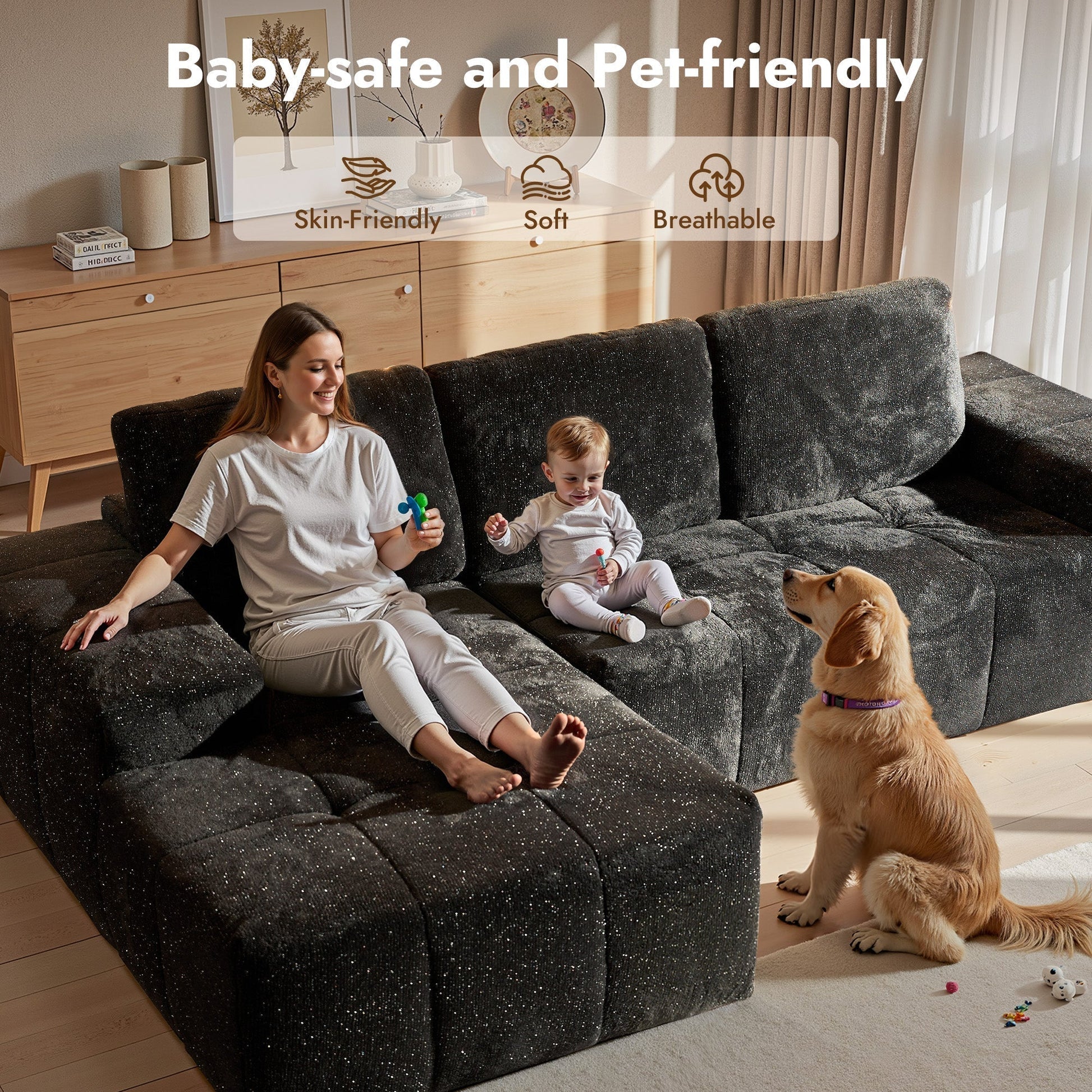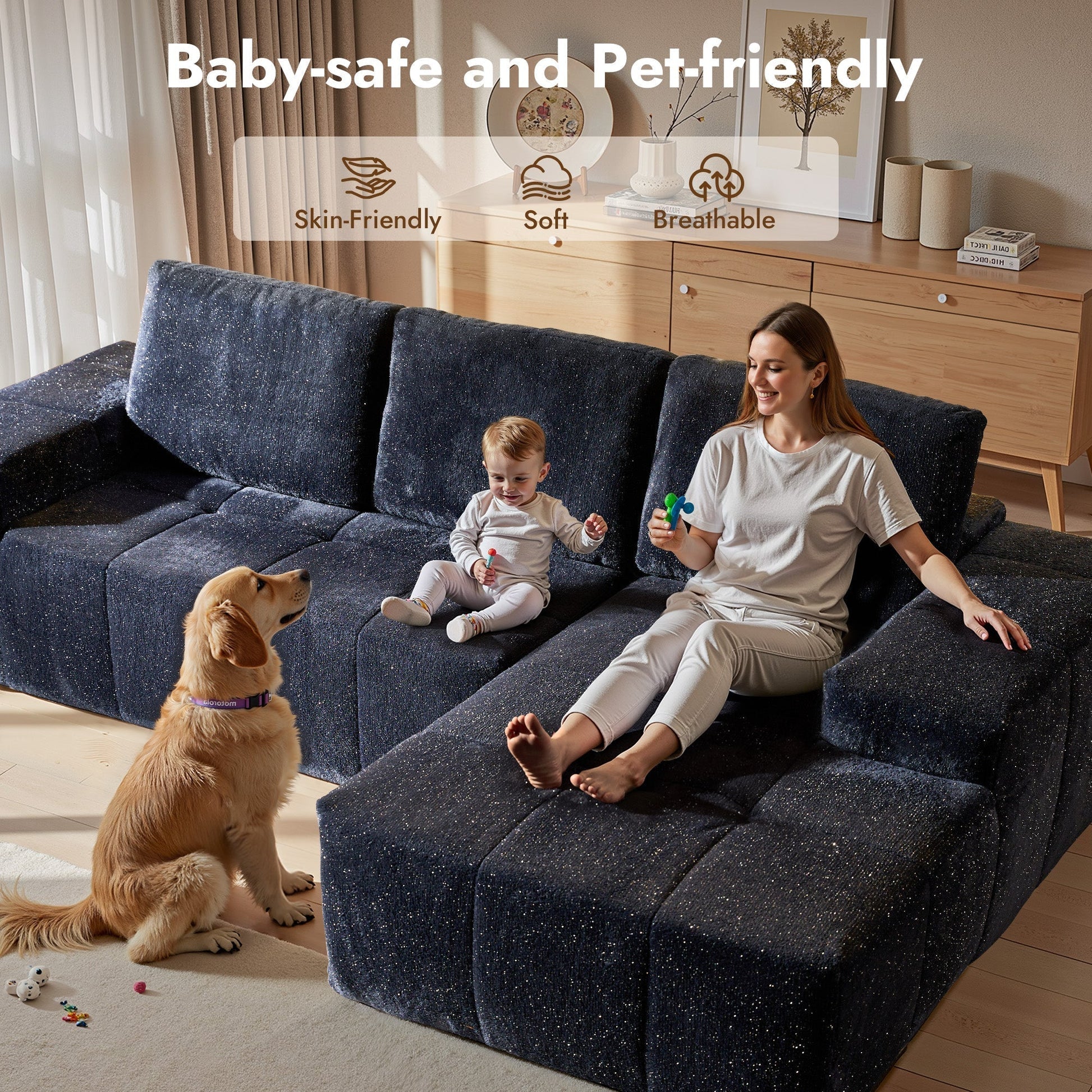 Flexible Sofa Set:Perfect for living spaces, apartment, bedrooms, guest quarters, and kiddo's play zones, our floor sofa wears many hats while enticing youngsters to romp on its cushy surface. Its modular blueprint allows breezy navigation through snug corridors and tight entrances, making sure every nook is put to use