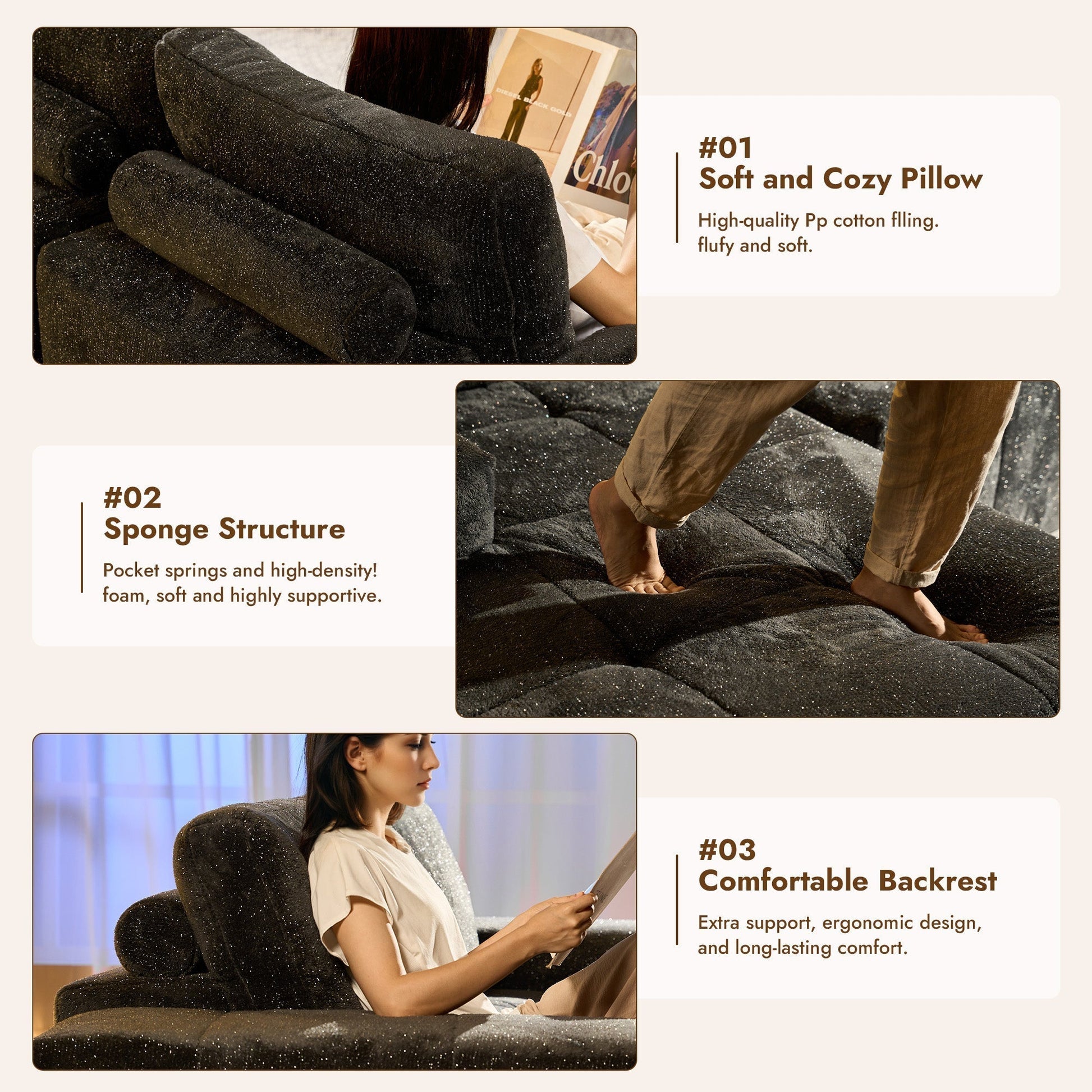 Comfy Chaise Couch:Bask in unparalleled luxury with our interchangeable sofa collection, which embodies a spacious, cloud-like seating sensation. Revel in supreme ease with our pull-out sofa with 69" lounge chaise, meticulously crafted from high resilience foam architecture and coil spring reinforcement