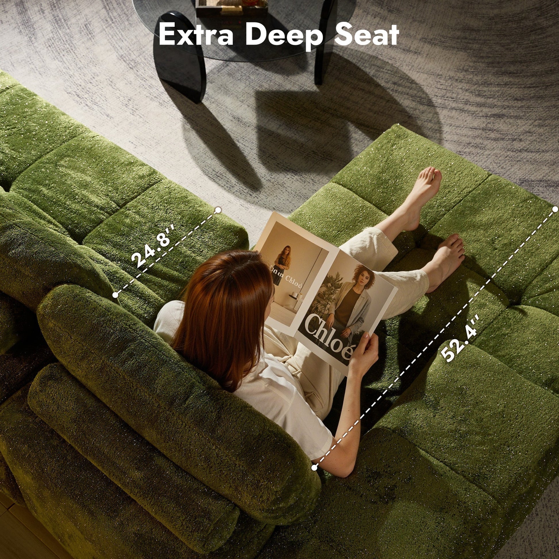 OVIOS 114" Cloud Sectional Sofa - L-Shaped Faux Leather Modular Couch with Deep Seat Chaise