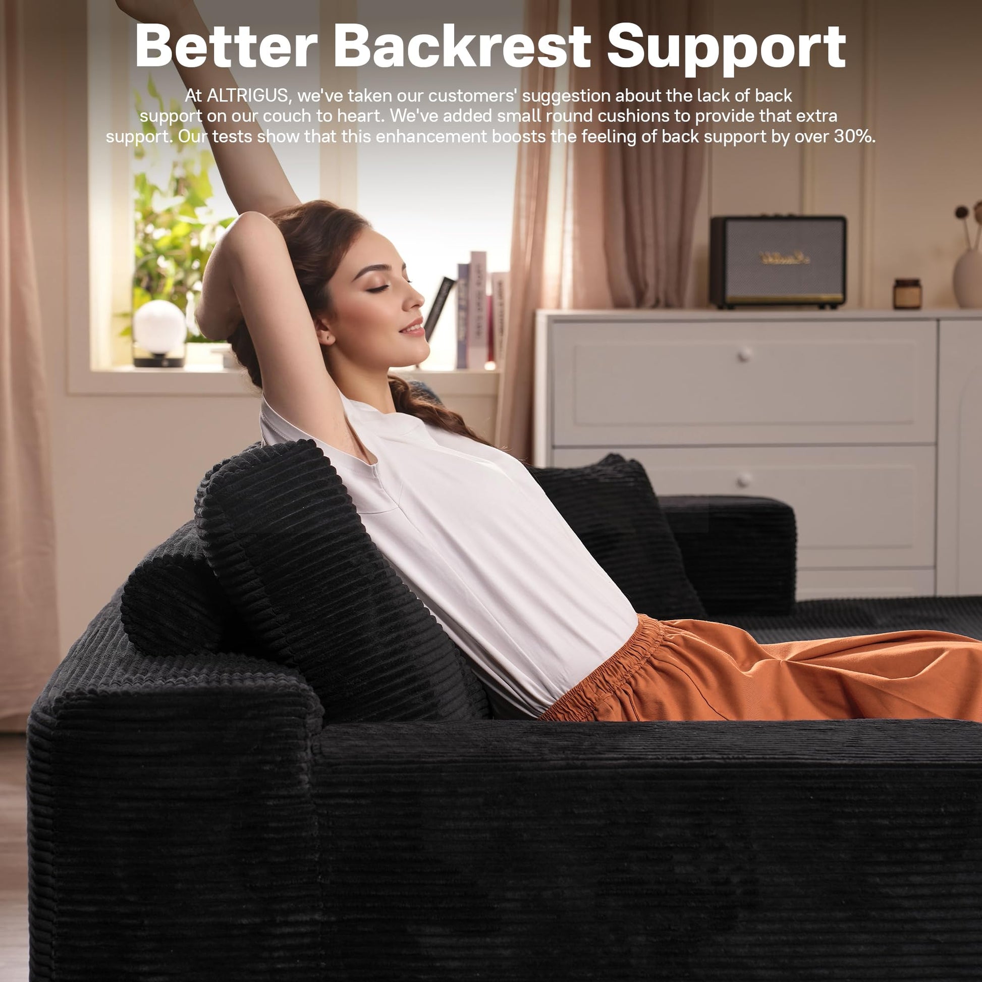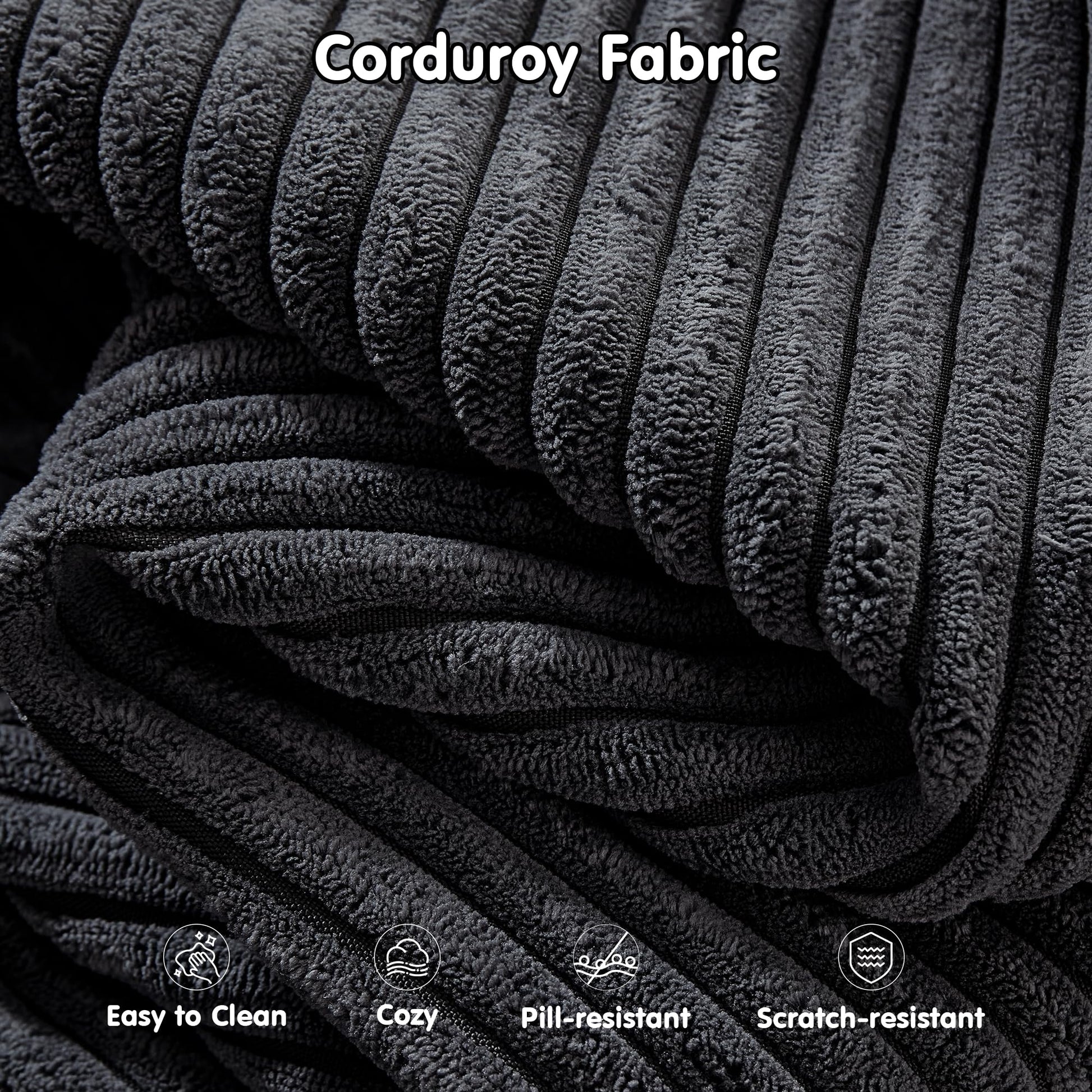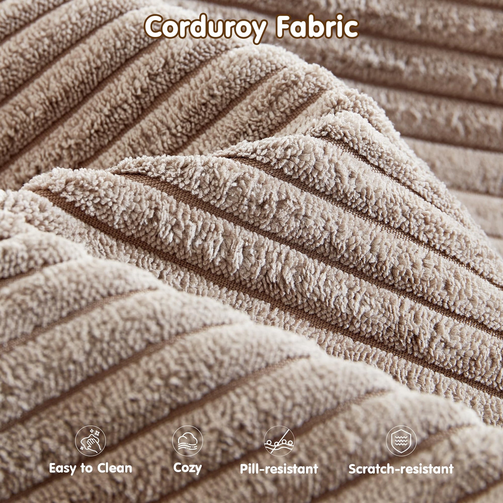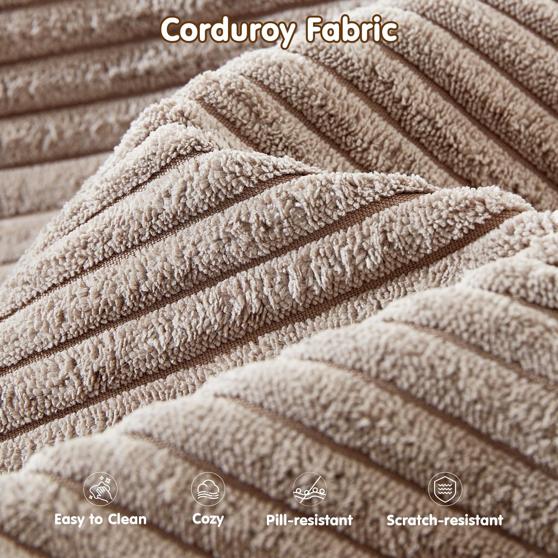 Corduroy Fabric:Wrapped in soft-touch corduroy fabric, this sofa brings a cozy, inviting texture to your living space. The material is not just comfortable—it’s also stain-resistant and durable, making it a smart choice for families, pet owners, or anyone who actually uses their furniture every day.